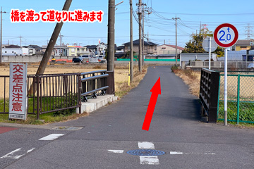吉川駅北口からのバスの時刻表は こちら *道路を横断する際はご注意ください。 吉川駅からの東武バス(吉02系統・吉川市役所行)でネオポリス北停留所で降りられましたら、道路の反対側に渡ります。 反対方向(吉川駅方面)のバス停の横の路地を入っていきます。(写真1) 150mくらいで小さな公園沿いの道に出ますので、公園の左側をやや斜め左方向に進みます。 90メートルほどで小さな橋(写真2)がありますのでそれを渡ってさらに200メートルほど進みます。 車通りの多い道(写真3)に当たりますので右に曲がります。 右側にJAを見ながら150メートル進むと右手に「レストラン穂思」が見えてきます。 「レストラン穂思」の向かい、「昭和樹脂」と「美容室プランタン」の看板の角(写真4)で左に曲がります。 (車道を渡りますが周辺には横断歩道がありませんので十分に注意して横断してください) そのまま650メートルほど道なりに進み、「昭和樹脂」の工場を超えると白い家があります。(写真5) 白い家の角を曲がり40mの左側がスタジオの入口(写真6)になります。